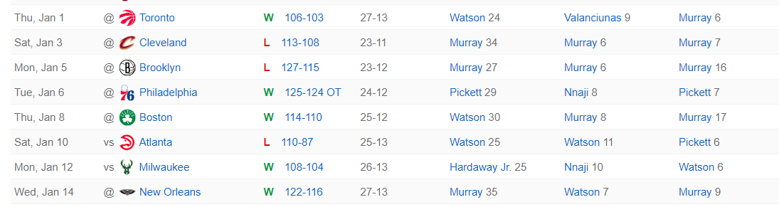 北京时间1月14日,丹佛掘金122-116击败鹈鹕拿到二连胜。这场比赛掘金在客场实现逆转,鹈鹕一度领先11分,可在下半场掘金开始掌控大局,尤其是末节牢牢控制节奏。贾马尔-穆雷与佩顿-沃特森两人都拿到30+的数据。